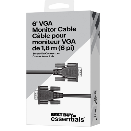 Terminez l’installation de votre poste de travail ou de jeu avec ce câble de moniteur VGA Best Buy Essentials. Il permet de brancher facilement et en toute fiabilité votre moniteur sur votre ordinateur, donc vous pourrez l’installer et l’utiliser en un rien de temps. Avec sa longueur généreuse de 1,8 m, vous avez amplement d’espace pour déplacer votre moniteur où vous en avez besoin, pour une utilisation et un déplacement faciles.